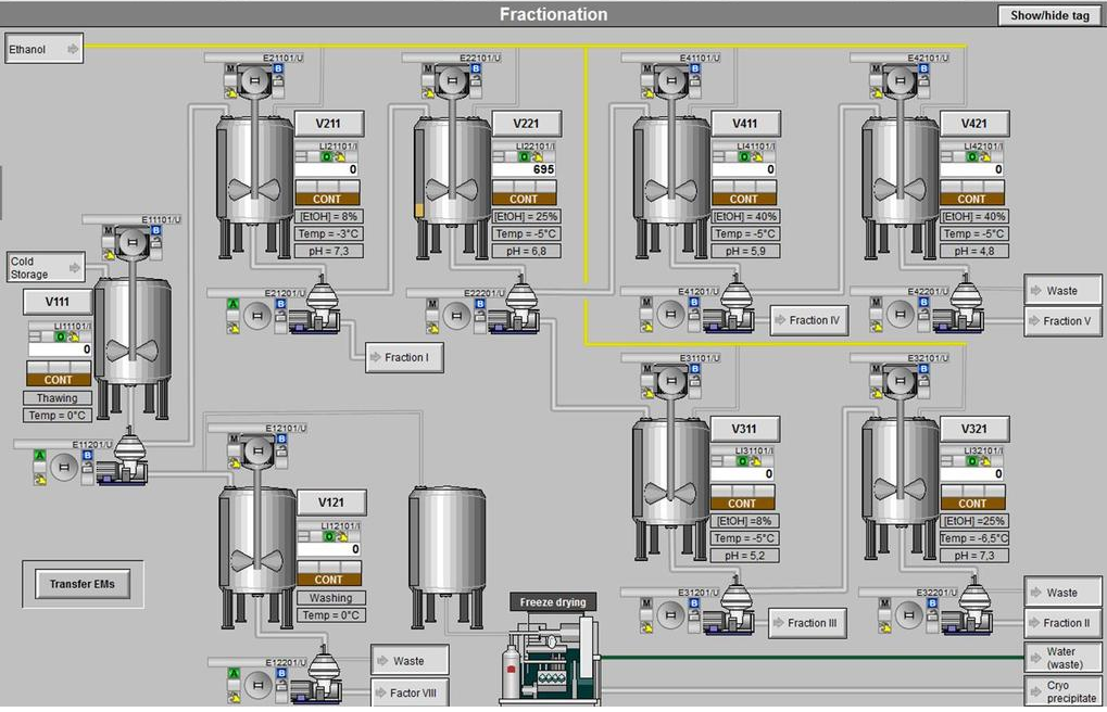 With SIMATIC PCS 7 and SIMATIC BATCH, the blood plasma fractionation process is mapped and controlled with the required high degree of efficiency, quality and performance.